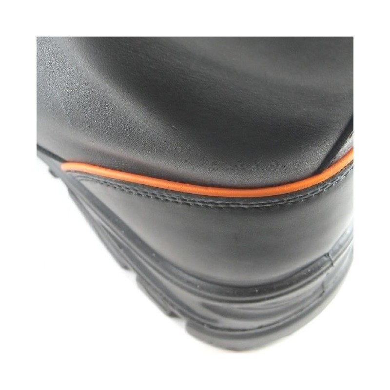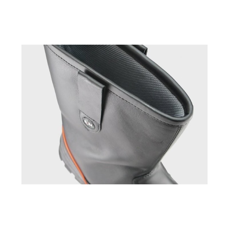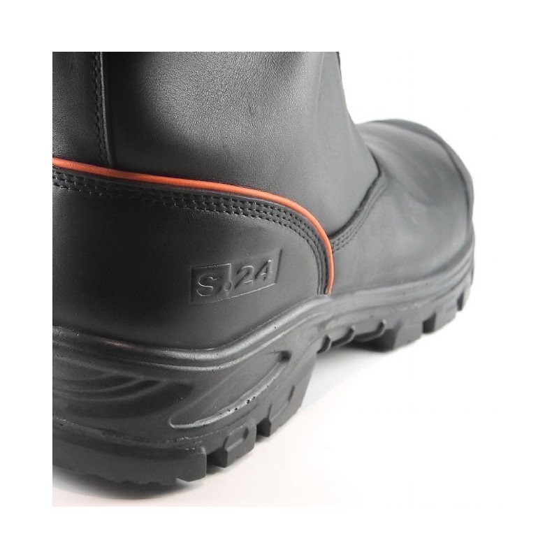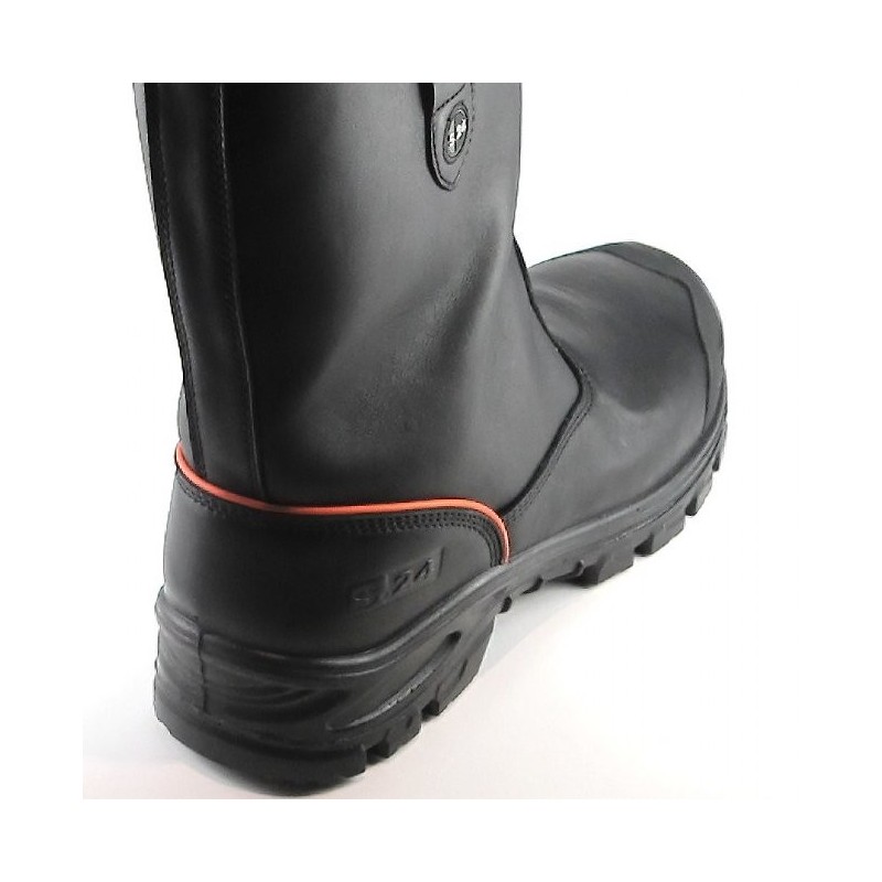 Botte de sécurité en cuir imperméable pleine fleur noire. Cette botte de sécurité homme est idéale pour les travaux en extérieur e présente plusieurs qualités :
