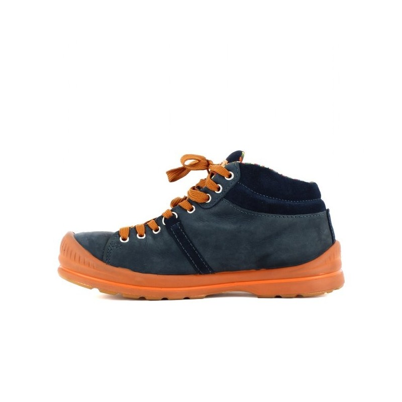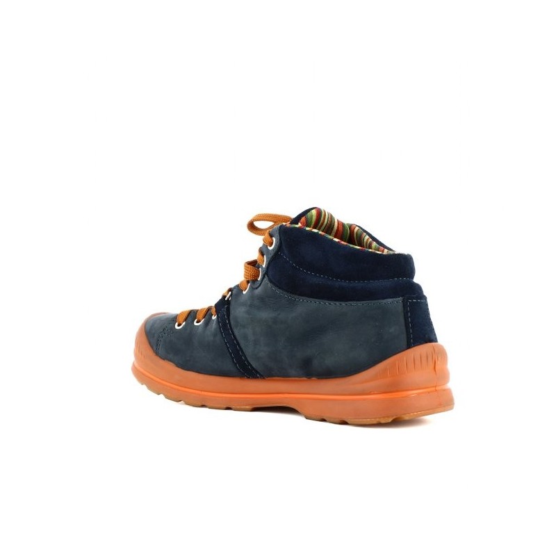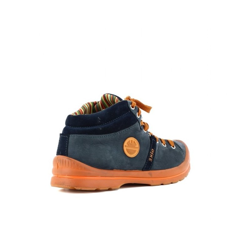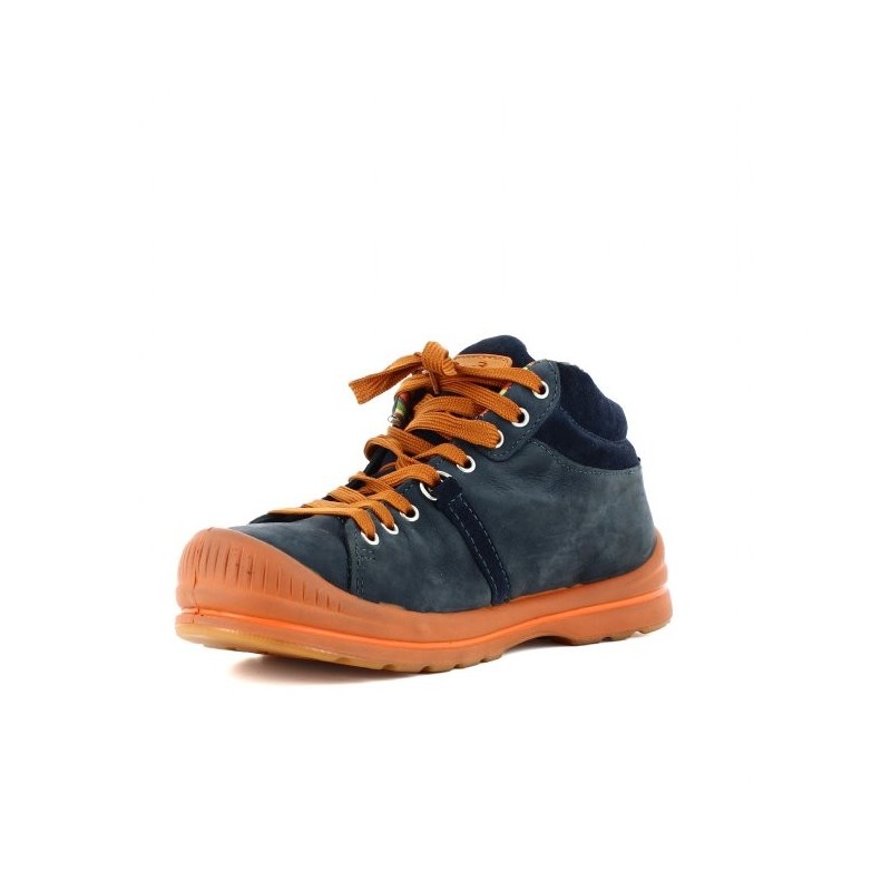 Chaussure basket de sécurité montante bleu marine pour hommes de qualité. Ce modèle dispose d'une tige en veau de suède graissé et foulonné donnant un joli effet vintage. L'intérieur de cette chaussure de sécurité est équipé d'une doublure Solidbreath respirante permettant l'évacuation de la transpiration gardant ainsi vos pieds au frais. La semelle est en PU compact transparente. L'inter-semelle est en PU étendu.