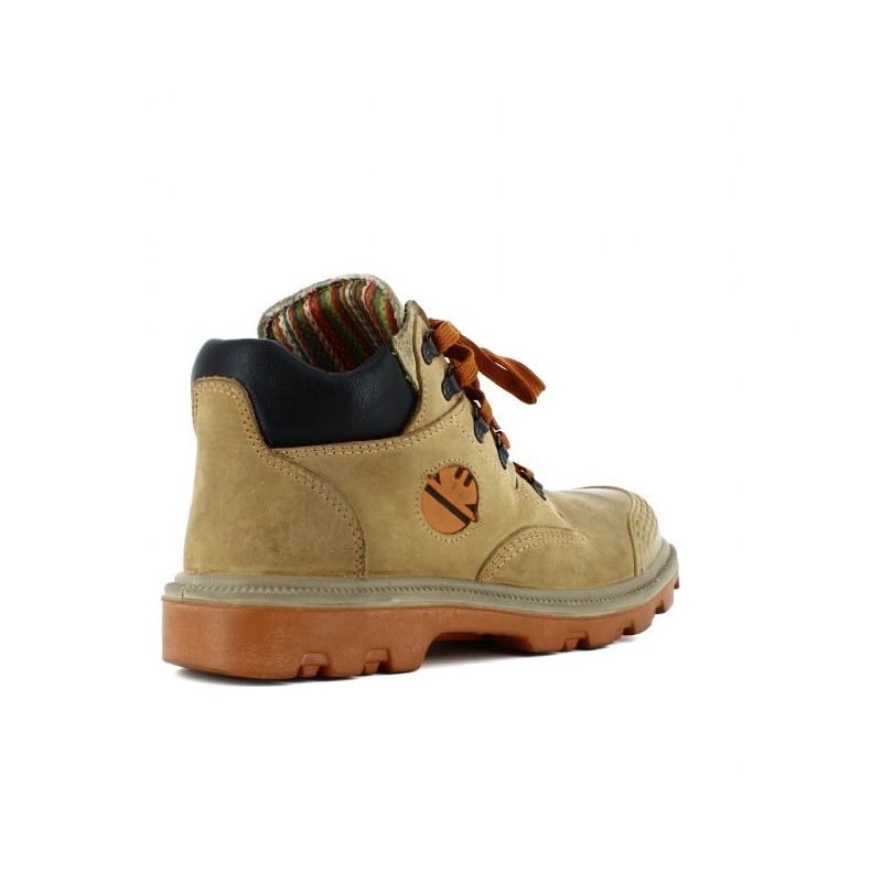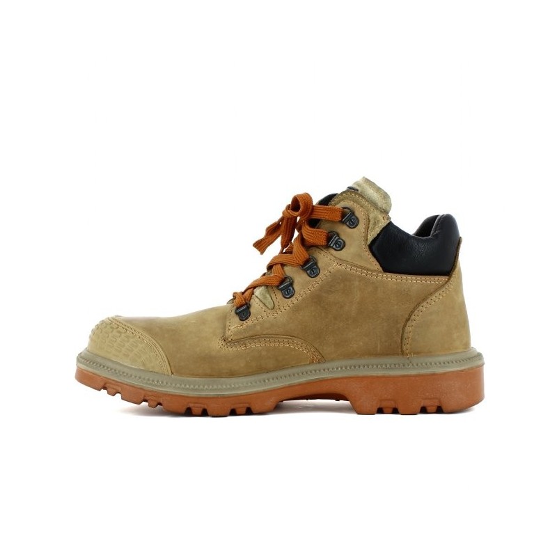 Nouvelle chaussure de sécurité de chantier de qualité avec un très joli look. Cette chaussure de sécurité btp est de couleur beige qui n'est pas sans rappeler les Timberlands. La tige de cette chaussure de chantier pour homme est en nubuck très résistant. On retrouve une semelle en caoutchouc HRO de très bonne qualité. La semelle intermédiaire est en PU étendu. L'embout Aluforce de cette chaussure de sécurité pour le gros oeuvre est très résistant et protègera votre pied de la meilleure des manières.
