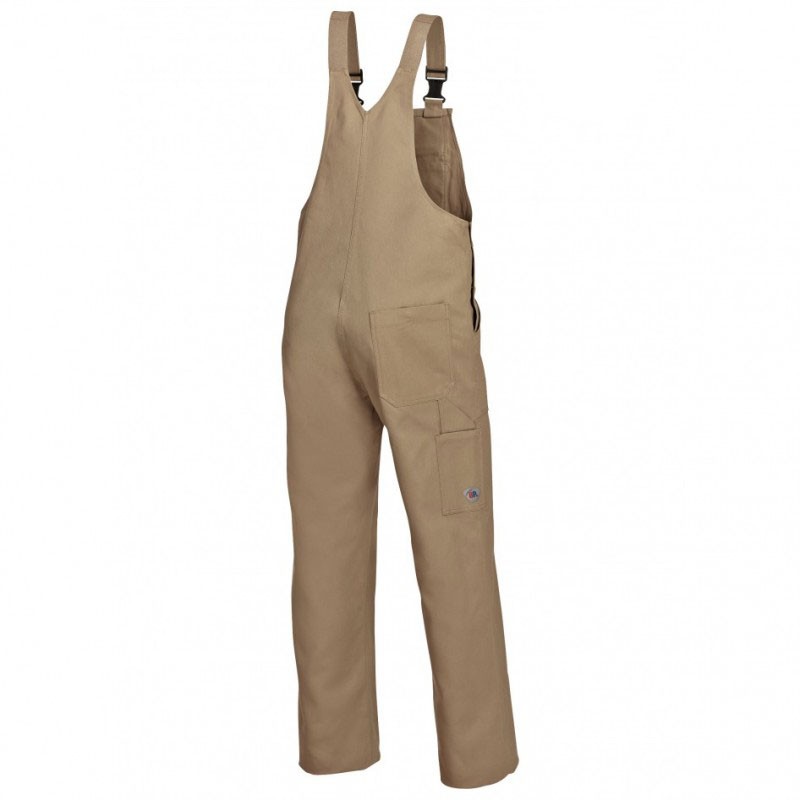 Cette salopette de travail dispose de bretelles en tissu avec empiècement élastique et de boucles "clic-clac" en plastique pour les attacher.