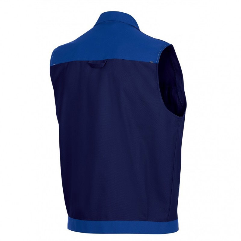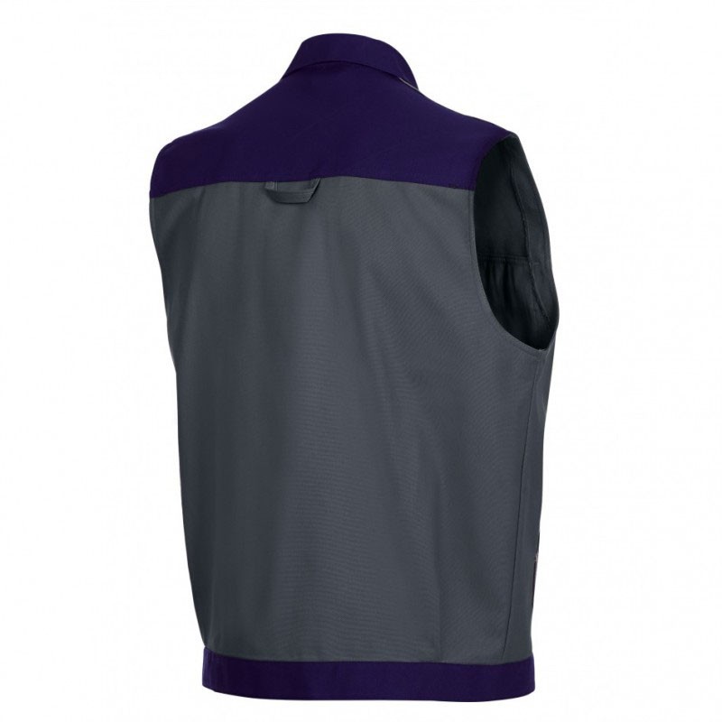 Vetement de travail veste sans manche est adapté au lavage industriel selon la norme ISO 15797.