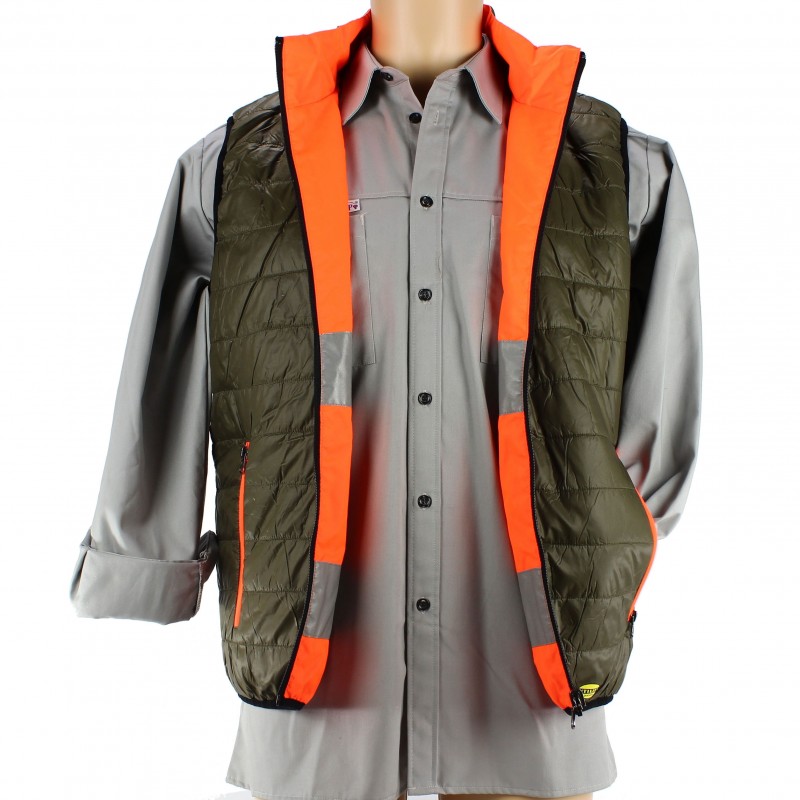 Ce gilet de sécurité orange et vert kaki sera votre nouvel allié pour mener à bien votre activité.